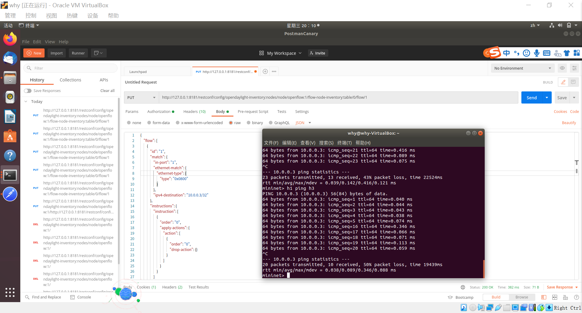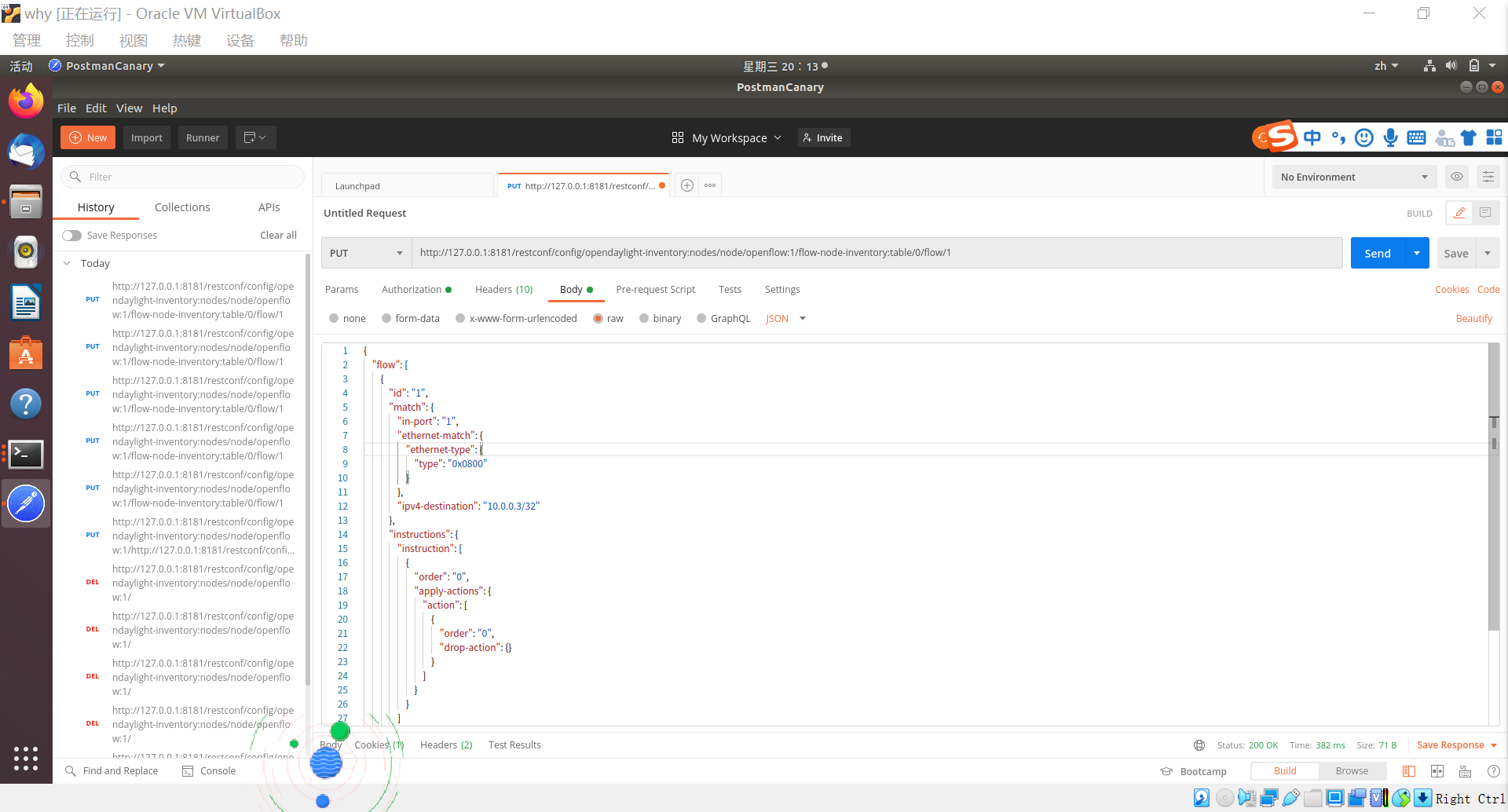 实验 6:OpenDaylight 实验——OpenDaylight 及 Postman实现流表下发