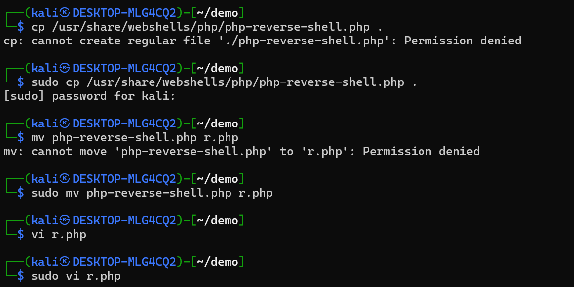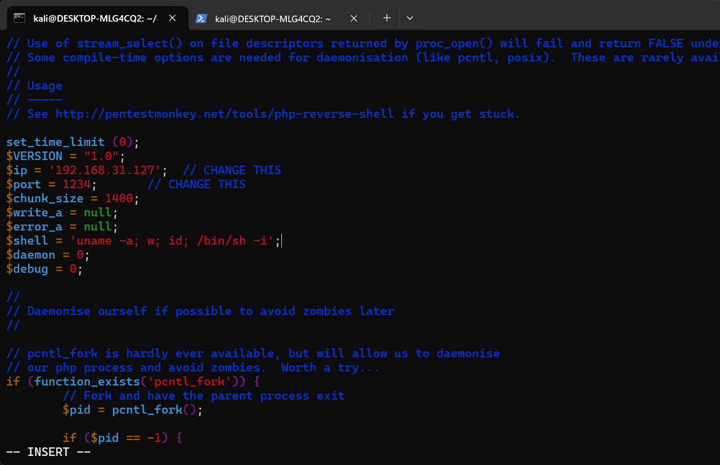 kali 里面自带有 webshell,修改一下里面的 ip 为 kali 本机的 ip