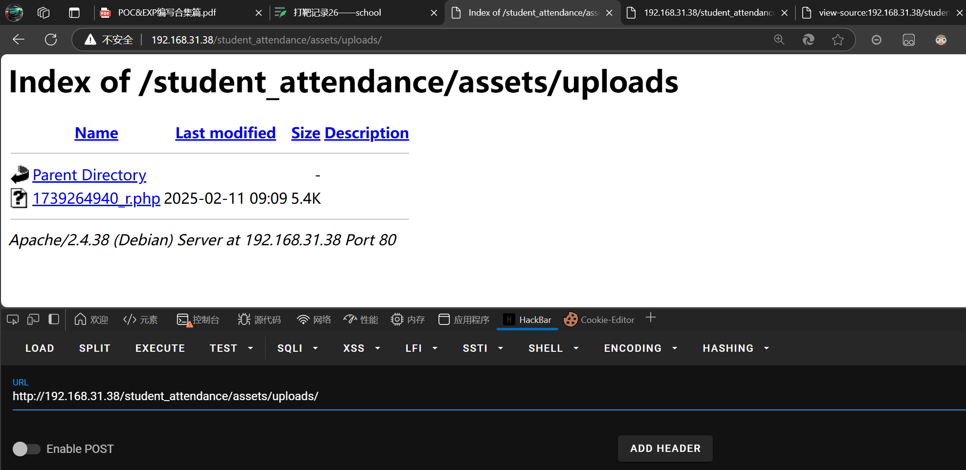 然后成功上传上去了,路径就在刚刚发现的 uploads 路径下