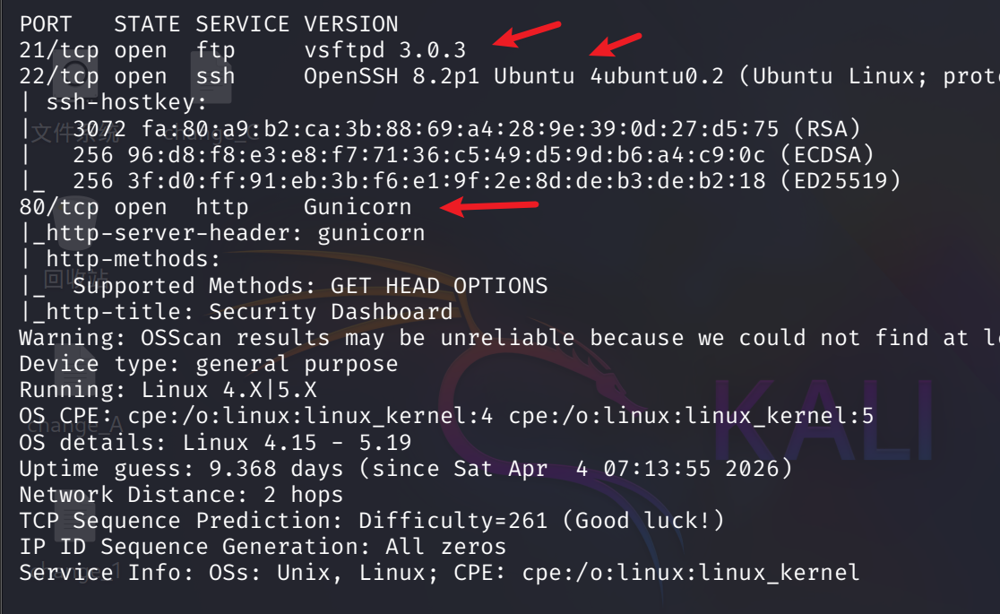 发现目标靶机是个 ubuntu 系统,FTP 版本是 3.0.3,Web 服务是 Gunicorn ,一个 python 的 Web 服务。