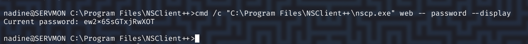 cmd /c "C:\Program Files\NSClient++\nscp.exe" web -- password --display