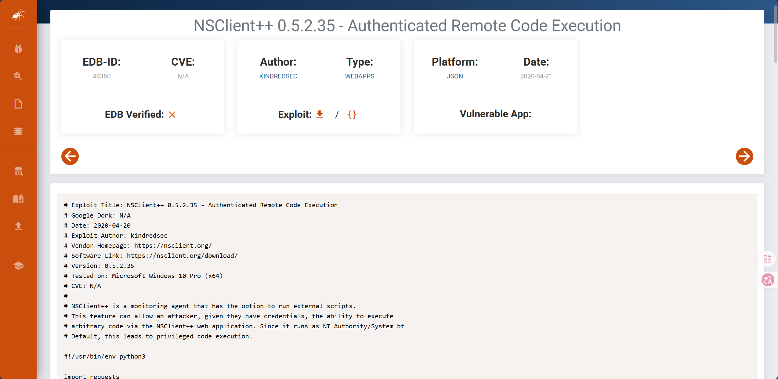 # NSClient++ 是一款具备运行外部脚本功能的监控代理工具。这一特性使得攻击者(前提是他们拥有相应权限)能够通过 NSClient++ 网络应用执行任意代码。由于它以 NT Authority\System 身份运行(默认设置),这会导致特权代码的执行。