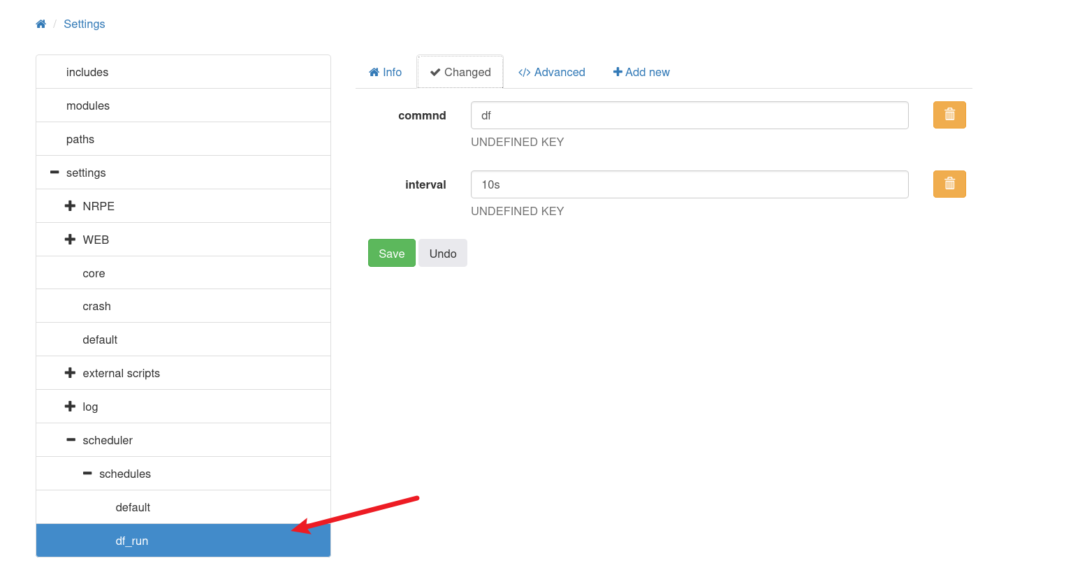 我按照 NSClient 文档中 How To Run Commands 的步骤操作后成功了。这些步骤是直接与 nsclient.ini 文件交互的,但我最终也掌握了如何使用 Web 界面获得相同的结果: