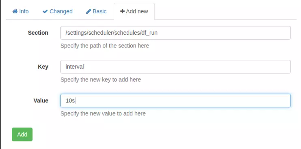现在,在“日程安排”>“日程”下,我将点击“+添加新日程”按钮。我需要在这里添加两项内容。首先,我将编辑该部分以添加新名称,然后将其间隔设置为 10 秒: