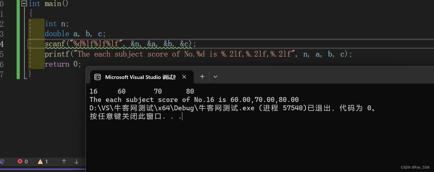 ps:在用”%c“格式输入字符时,空格字符和转义字符都作为有效字符输入