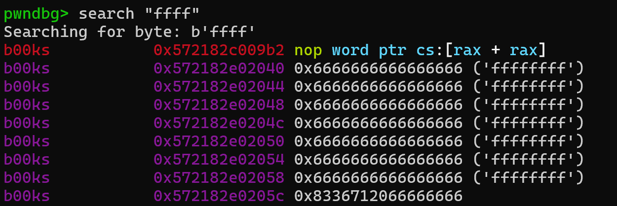 如果先写满32个字符,再创建book[0],结束符'\0'就会被data0的地址覆盖掉。于是output的时候,data0的地址会被连带着输出来!然后偏移固定,每本书的每个子变量的地址都可以推断出来。