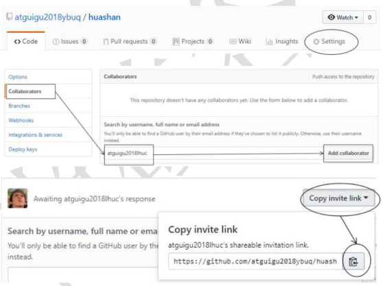 将连接发送给其他人,别人登录自己的GitHub账号,访问邀请链接即可