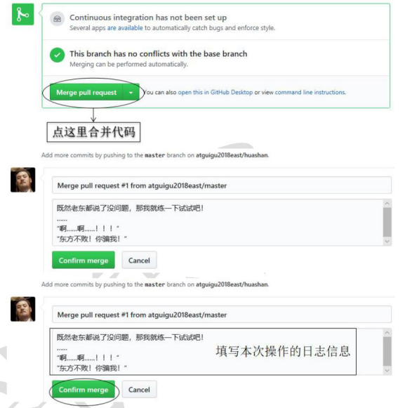 如果不是基于GitHub远程库的最新版本所做的修改,不能推送,必须先拉取。拉取下来后如果进入冲突状态,则按照"分之冲突解决"操作解决即可