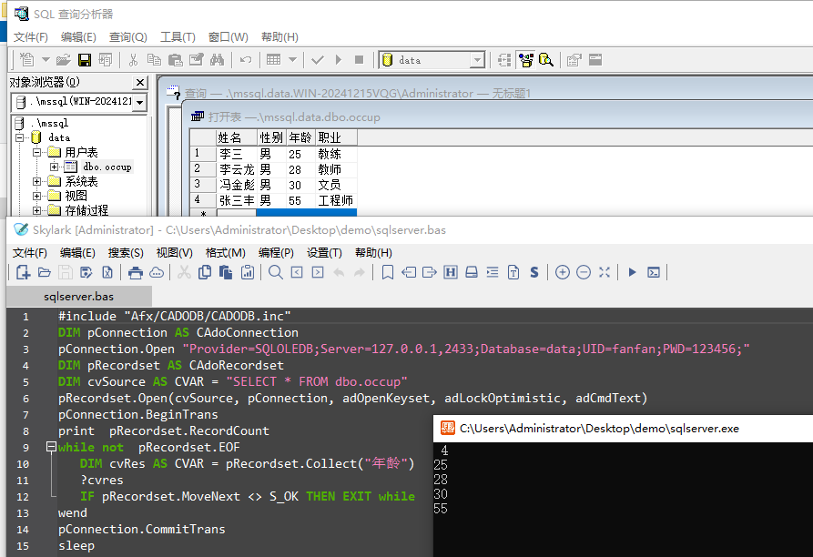 DIM cvSource AS CVAR = "SELECT * FROM dbo.occup"