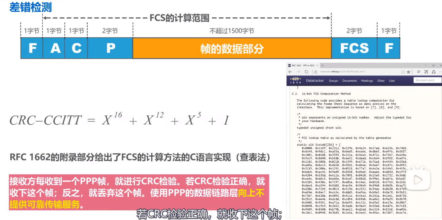 CRC有很好的检错能力(漏检率非常低),虽然计算比较复杂,但易于用硬件实现,因此被广泛应用于数据链路层