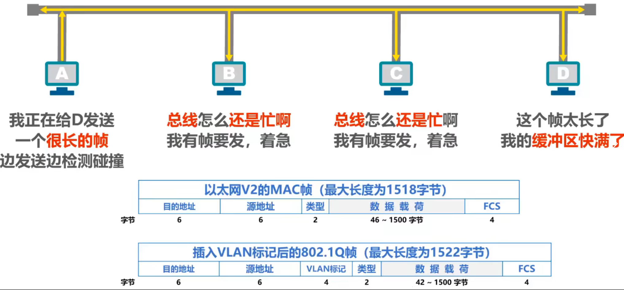 帧开始定界符:表明其后面紧跟着的就是MAC帧