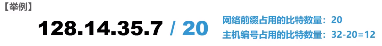 CIDR使用“斜线记法”,或称CIDR记法。即在IPv4地址后面加上斜线"/",在斜线后面写上网络前缀所占比特数量