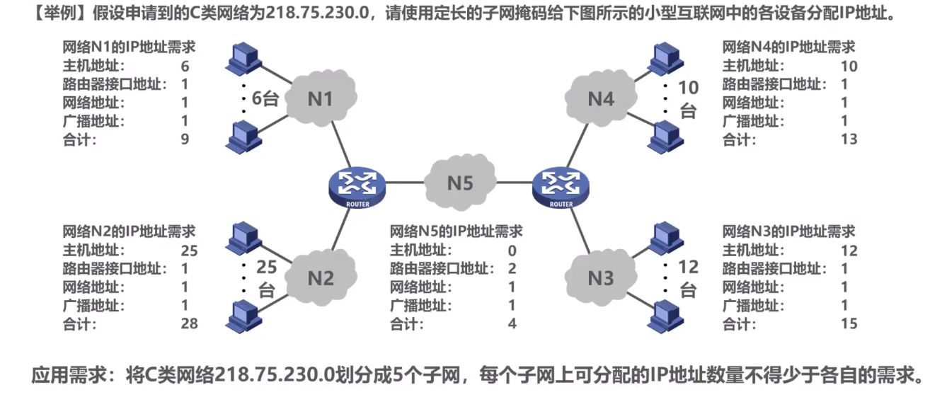 (1个“/27”地址块,3个“/28”地址块,1个“/30”地址块),按需分配给下图所示的5个网络。