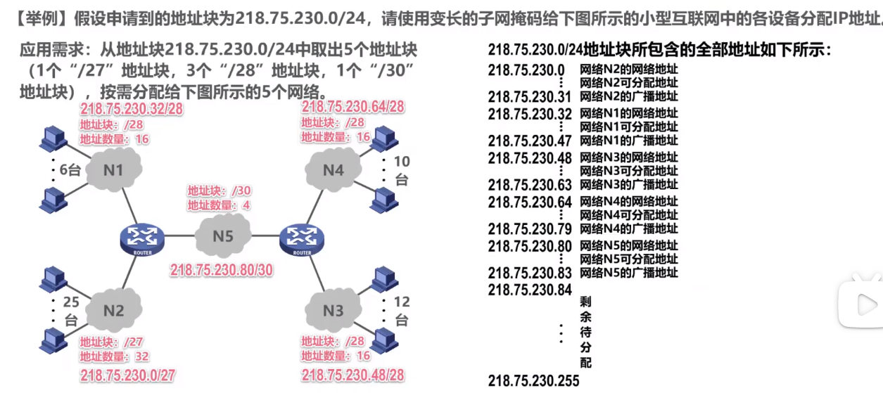 给定一个IPv4地址块,如何将其划分成几个更小的地址块,并将这些地址块分配给互联网中的不同网络,进而可以给个网络中的主机和路由器接口分配IPv4地址。