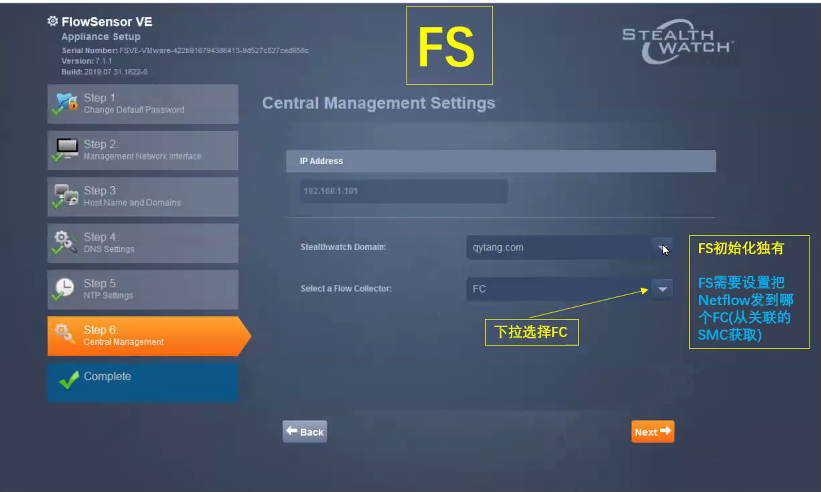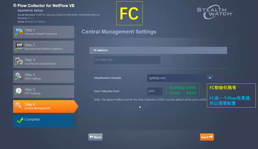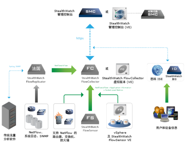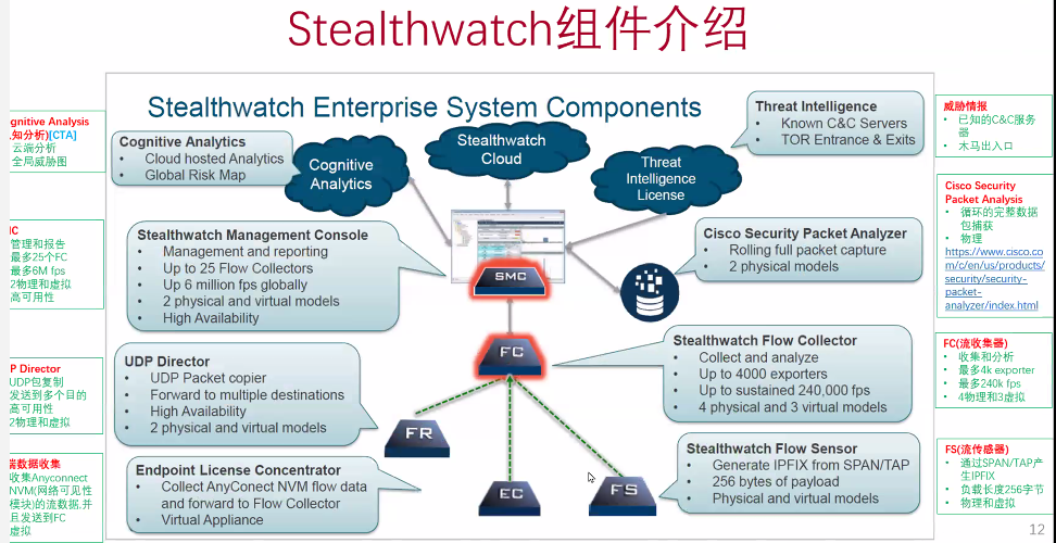 SMC:是stealthwatch的管理中心,其他几个部件均需要关联至SMC,SMC可以对其进行管理并配置;