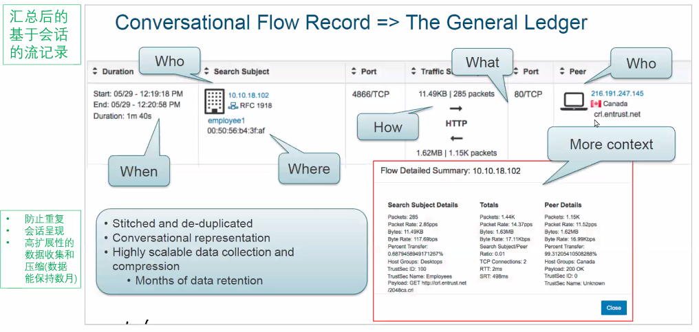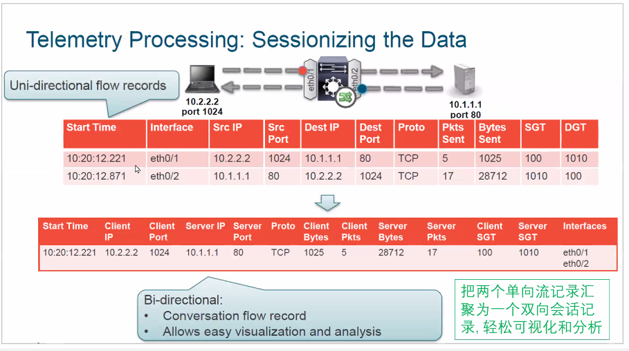 netflow是无状态化的,双向调用产生的是两个流,stealwatch会对双流量进行汇聚,