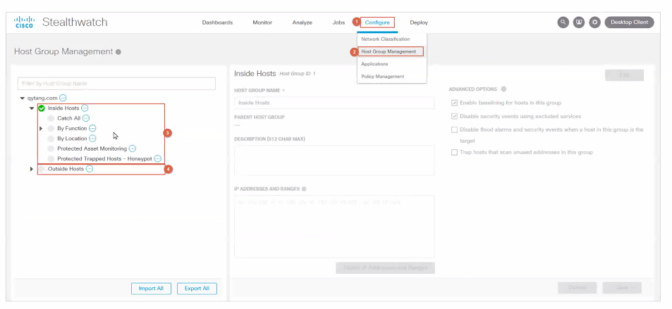 如图,主机组默认已经有inside及outside