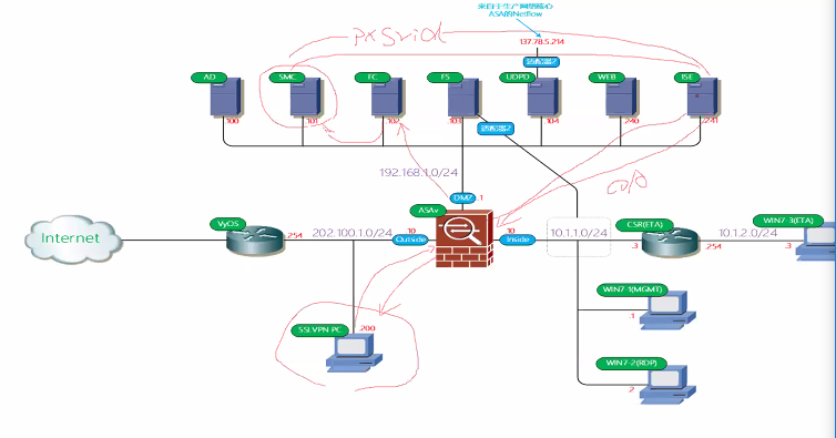 SMC发现pc有问题,smc发现哪个用户在做扫描,通过PxGrid发向ISE,ISE发向ASAv,将用户T掉