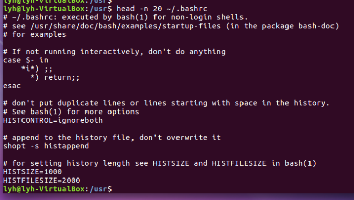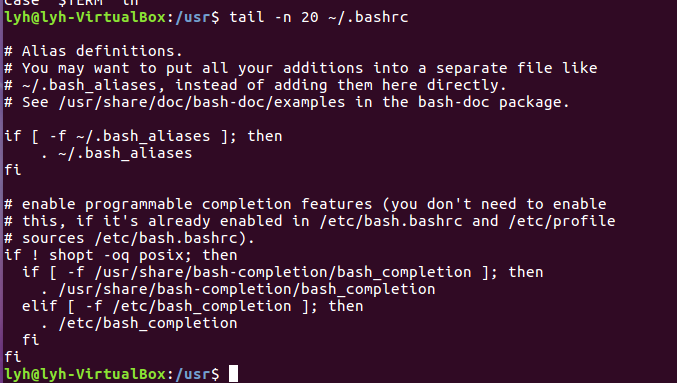 (20)查看主文件夹下.bashrc文件内容最后20行