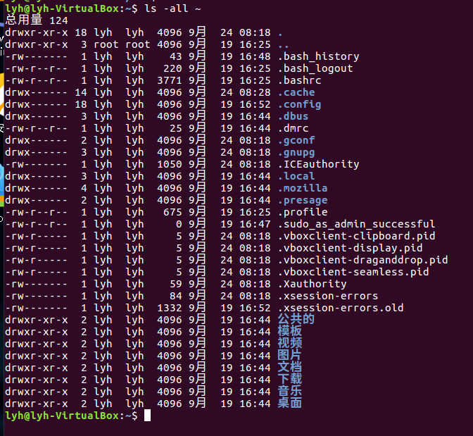 (4)查看目录/usr下所有的文件 :ls -all ~