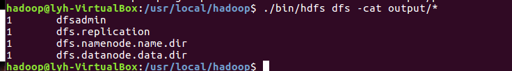 - 运行MapReduce示例作业,输出结果放在output目录下
