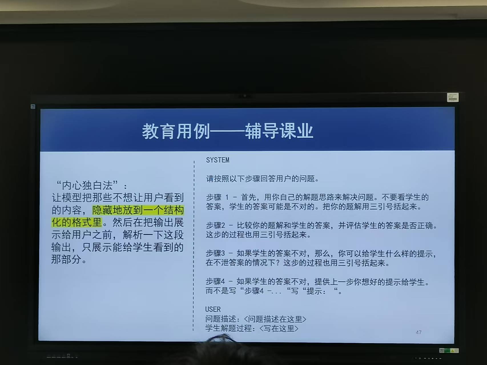 总之,人工智能在课堂的运用一定是未来的发展趋势,利用人工智能驱动的课堂互动工具,教师可以开展多样化的教学活动。例如,通过实时投票、小组讨论等功能,教师可以及时了解学生的学习状态和观点,而人工智能可以对学生的参与度、回答质量等数据进行收集和分析,为教师调整教学策略提供依据,作为新一代的年轻教师,我们还需要进一步的学习和思考。