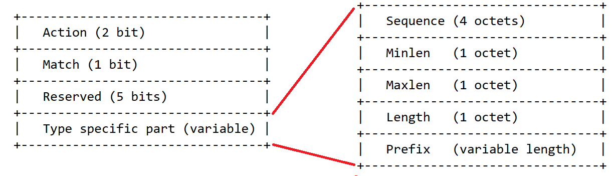 ADD 用于将新的 ORF 条目添加给 BGP peer;REMOVE 用于通知 BGP peer 将先前安装的 ORF 条目;REMOVE-ALL用于通知 BGP peer 将先前自己要求安装的 ORF 条目删除。