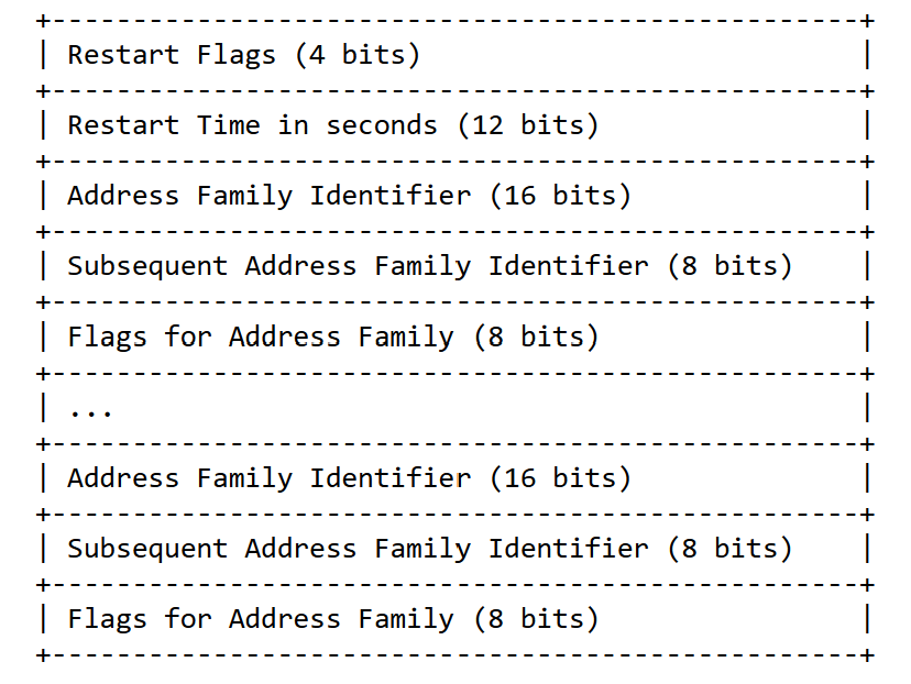 3@<AFI,SAFI>:共 3 字节,用于表示启动 GR 功能的地址族类型。