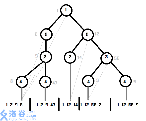然后,我们就大功告成了!假如我们要查询操作\(7\)的数组是什么,我们就可以从\(7\)的父亲往上找,然后倒过来输出就可以了!!