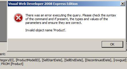后来发现把 From [Product] 改成 From Production.Product 就可以正常查询了