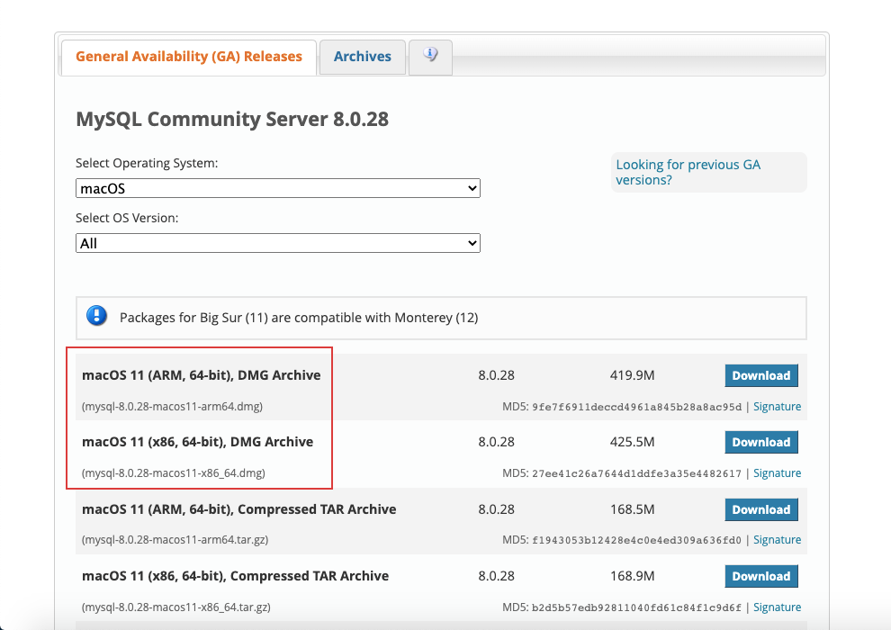 MySQL 8提供 x86架构 与 ARM架构的macOS安装