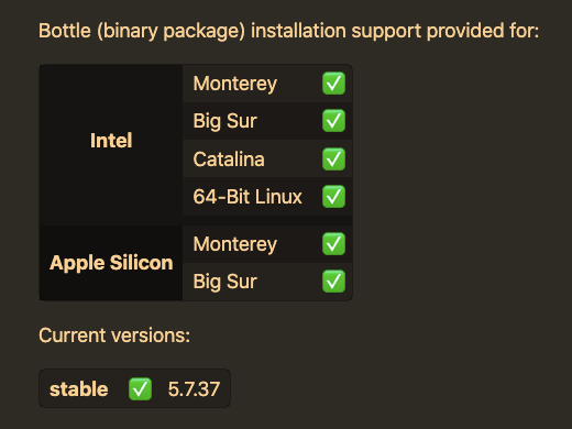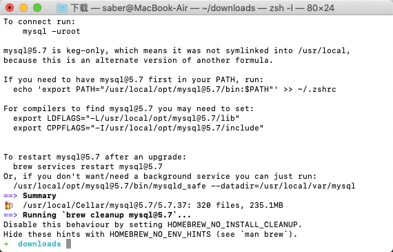 🍺 /usr/local/Cellar/mysql@5.7/5.7.37: 320 files, 235.1MB