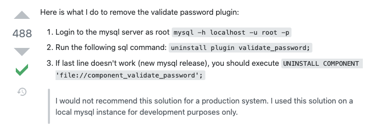 不建议通过SET GLOBAL validate_password_length=4;修改密码验证插件相关参数