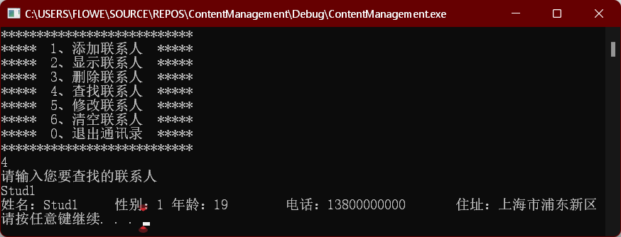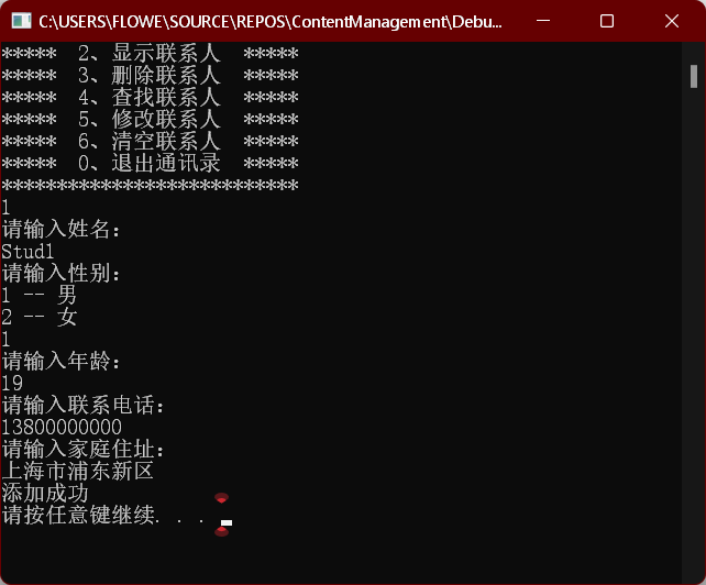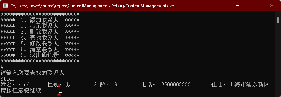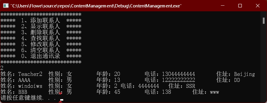 这是一个通讯录管理系统的项目,基于 CSDN 博客《大学C++项目总结(通讯录管理系统)》二次开发。经过搜索和分析,原项目的总体结构和于 Github 开源的“management-system”相似,可能是原作者基于“management-system”开发的项目。