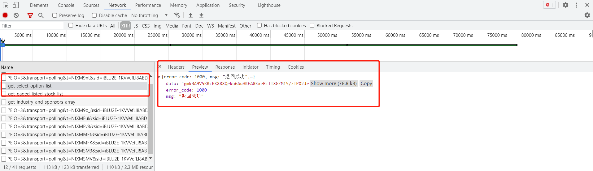 请求成功后,返回一长段的数据data,需要的数据应该就是对data进行解密了,现在开始找解密点