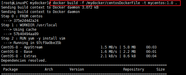 2,构建镜像,docker build -f dockerfile文件绝对路径 -t 新镜像名字:TAG .