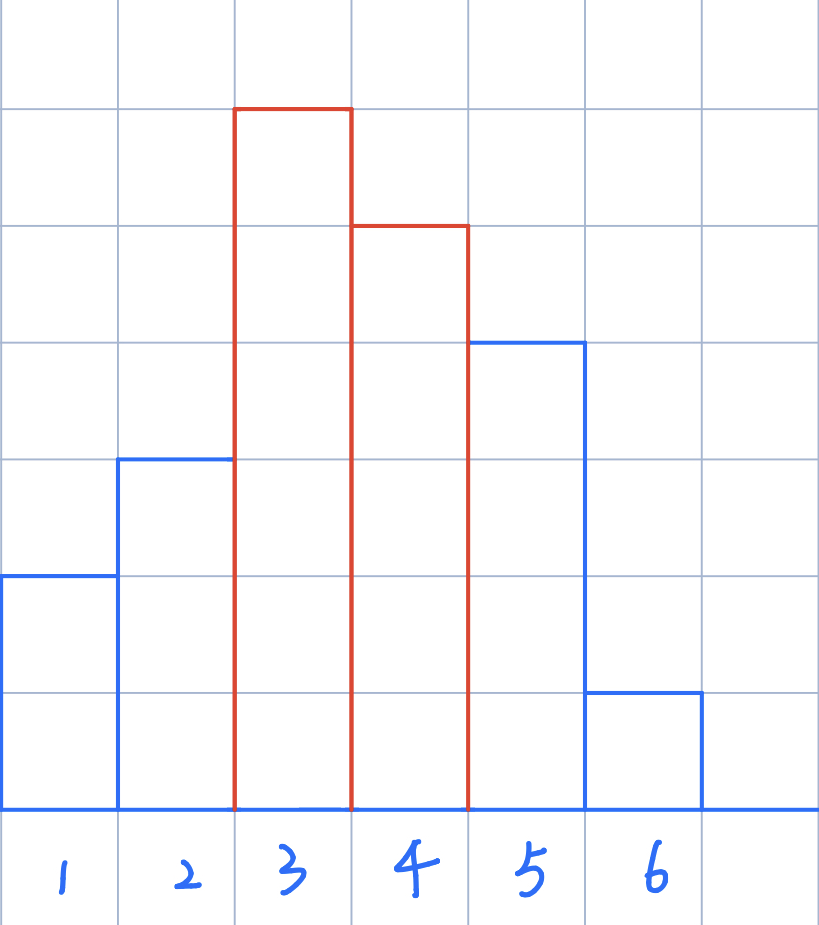 ,但是left却为3,因为中间有比2和5都高的部分。所以真正的操作为,弹出栈顶元素,left为弹出后栈顶元素的下标+1。为了计算方便,数组开头和末尾都加一个0。