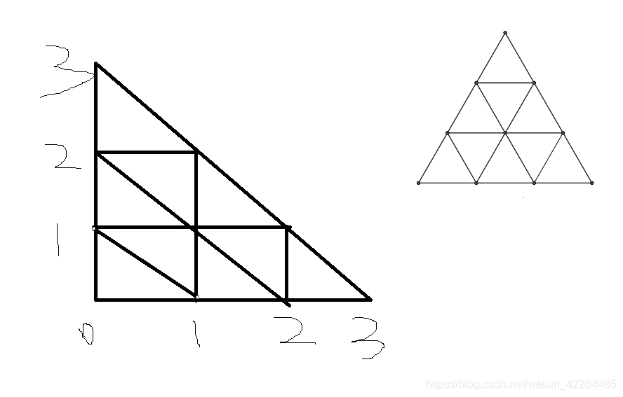 把等边三角形旋转变成直角三角形。枚举任意两个点,求坐标差的gcd,如果大于1,则结果加1。