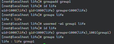 usermod -aG group1 life