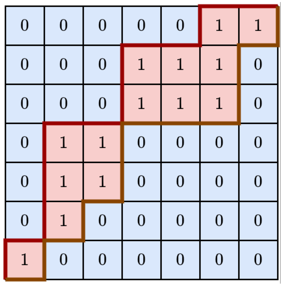 性质 \(8\):如果 \(1\) 上边有一个 \(0\),那么 \(0\) 的左上矩阵必然都是 \(0\)。