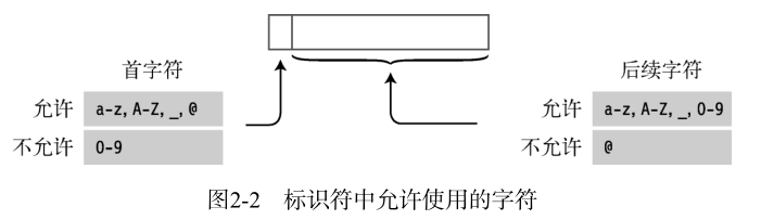 ③:@字符只能放在标识符的首位,虽允许使用,但不推荐