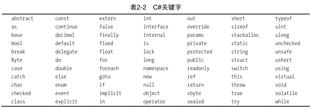 ①:关键字一般不能被用做变量名或任何其他形式的标识符,除非以@字符开始