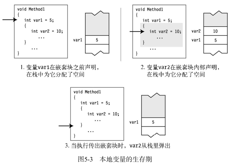 - 本地变量可以在内嵌块内部声明,并且和所有本地变量一样,它的生存期和可见性仅限于声明它们的块及其内嵌块