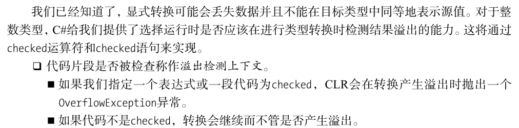 定义:检测某些数值类型转化的过程中是否有数据溢出可使用关键字checked