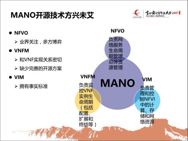 后面重点讲的是,先针对这边讲一讲,然后针对MANO讲一讲,到底哪些开源技术在应用。