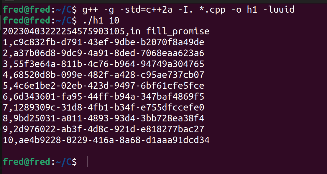 g++ -g -std=c++2a -I. *.cpp -o h1 -luuid