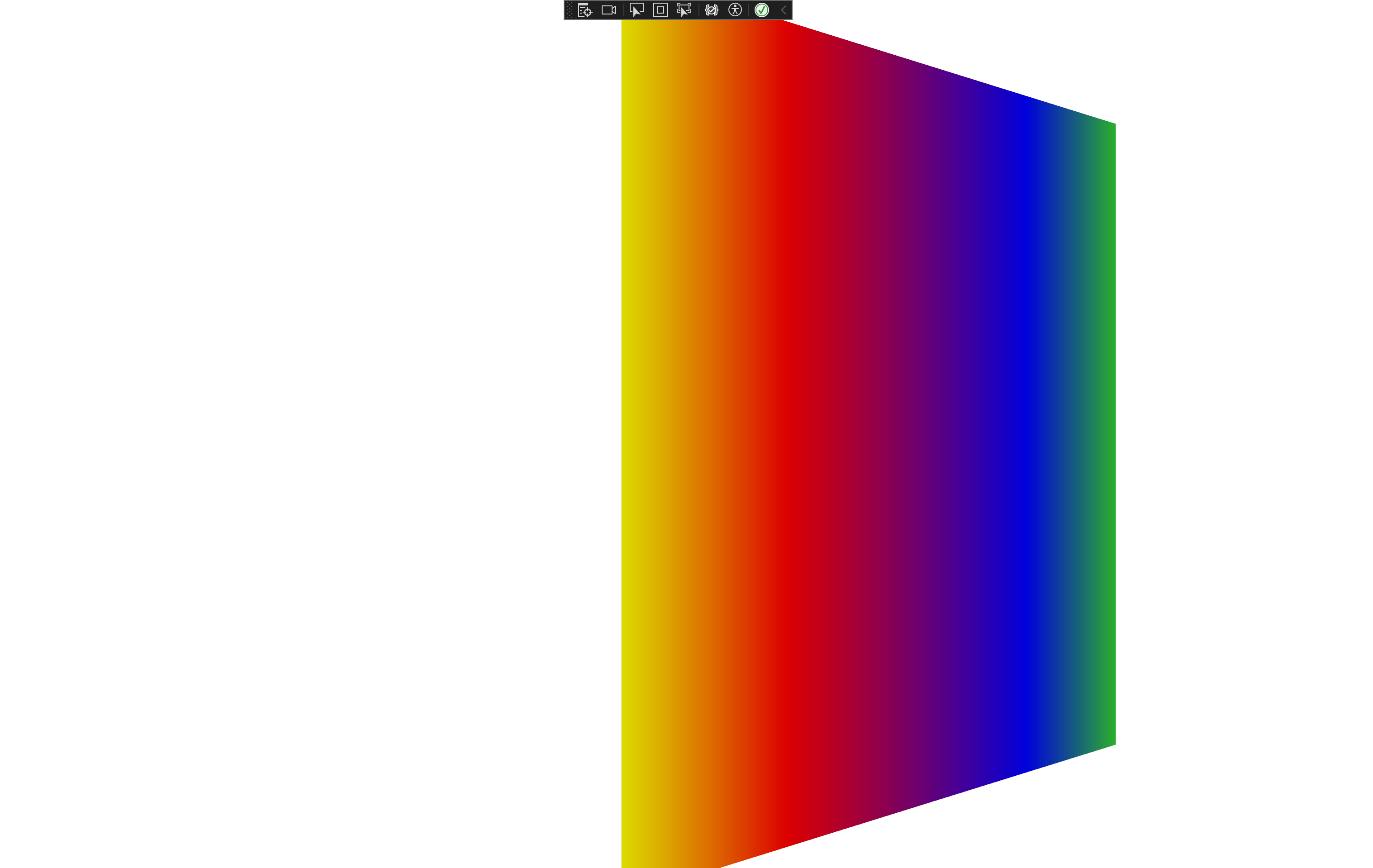 using System; using System.Collections.Generic; using System.Linq; using System.Text; using System.Threading.Tasks; using System.Windows; using System.Windows.Controls; using System.Windows.Data; using System.Windows.Documents; using System.Windows.Input; using System.Windows.Media; using System.Windows.Media.Imaging; using System.Windows.Media.Media3D; using System.Windows.Navigation; using System.Windows.Shapes; namespace WpfApp103 { /// <summary> /// Interaction logic for MainWindow.xaml /// </summary> public partial class MainWindow : Window { public MainWindow() { InitializeComponent(); WindowState = System.Windows.WindowState.Maximized; WindowStyle = System.Windows.WindowStyle.None; InitViewPort3D(); } private void InitViewPort3D() { Viewport3D myViewport3D = new Viewport3D(); Model3DGroup myModel3DGroup = new Model3DGroup(); GeometryModel3D myGeometryModel = new GeometryModel3D(); ModelVisual3D myModelVisual3D = new ModelVisual3D(); // Defines the camera used to view the 3D object. In order to view the 3D object, // the camera must be positioned and pointed such that the object is within view // of the camera. PerspectiveCamera myPCamera = new PerspectiveCamera(); // Specify where in the 3D scene the camera is. myPCamera.Position = new Point3D(0, 0, 2); // Specify the direction that the camera is pointing. myPCamera.LookDirection = new Vector3D(0, 0, -1); // Define camera's horizontal field of view in degrees. myPCamera.FieldOfView = 60; // Asign the camera to the viewport myViewport3D.Camera = myPCamera; // Define the lights cast in the scene. Without light, the 3D object cannot // be seen. Note: to illuminate an object from additional directions, create // additional lights. DirectionalLight myDirectionalLight = new DirectionalLight(); myDirectionalLight.Color = Colors.White; myDirectionalLight.Direction = new Vector3D(-0.61, -0.5, -0.61); myModel3DGroup.Children.Add(myDirectionalLight); // The geometry specifes the shape of the 3D plane. In this sample, a flat sheet // is created. MeshGeometry3D myMeshGeometry3D = new MeshGeometry3D(); // Create a collection of normal vectors for the MeshGeometry3D. Vector3DCollection myNormalCollection = new Vector3DCollection(); myNormalCollection.Add(new Vector3D(0, 0, 1)); myNormalCollection.Add(new Vector3D(0, 0, 1)); myNormalCollection.Add(new Vector3D(0, 0, 1)); myNormalCollection.Add(new Vector3D(0, 0, 1)); myNormalCollection.Add(new Vector3D(0, 0, 1)); myNormalCollection.Add(new Vector3D(0, 0, 1)); myMeshGeometry3D.Normals = myNormalCollection; // Create a collection of vertex positions for the MeshGeometry3D. Point3DCollection myPositionCollection = new Point3DCollection(); myPositionCollection.Add(new Point3D(-0.5, -0.5, 0.5)); myPositionCollection.Add(new Point3D(0.5, -0.5, 0.5)); myPositionCollection.Add(new Point3D(0.5, 0.5, 0.5)); myPositionCollection.Add(new Point3D(0.5, 0.5, 0.5)); myPositionCollection.Add(new Point3D(-0.5, 0.5, 0.5)); myPositionCollection.Add(new Point3D(-0.5, -0.5, 0.5)); myMeshGeometry3D.Positions = myPositionCollection; // Create a collection of texture coordinates for the MeshGeometry3D. PointCollection myTextureCoordinatesCollection = new PointCollection(); myTextureCoordinatesCollection.Add(new Point(0, 0)); myTextureCoordinatesCollection.Add(new Point(1, 0)); myTextureCoordinatesCollection.Add(new Point(1, 1)); myTextureCoordinatesCollection.Add(new Point(1, 1)); myTextureCoordinatesCollection.Add(new Point(0, 1)); myTextureCoordinatesCollection.Add(new Point(0, 0)); myMeshGeometry3D.TextureCoordinates = myTextureCoordinatesCollection; // Create a collection of triangle indices for the MeshGeometry3D. Int32Collection myTriangleIndicesCollection = new Int32Collection(); myTriangleIndicesCollection.Add(0); myTriangleIndicesCollection.Add(1); myTriangleIndicesCollection.Add(2); myTriangleIndicesCollection.Add(3); myTriangleIndicesCollection.Add(4); myTriangleIndicesCollection.Add(5); myMeshGeometry3D.TriangleIndices = myTriangleIndicesCollection; // Apply the mesh to the geometry model. myGeometryModel.Geometry = myMeshGeometry3D; // The material specifies the material applied to the 3D object. In this sample a // linear gradient covers the surface of the 3D object. // Create a horizontal linear gradient with four stops. LinearGradientBrush myHorizontalGradient = new LinearGradientBrush(); myHorizontalGradient.StartPoint = new Point(0, 0.5); myHorizontalGradient.EndPoint = new Point(1, 0.5); myHorizontalGradient.GradientStops.Add(new GradientStop(Colors.Yellow, 0.0)); myHorizontalGradient.GradientStops.Add(new GradientStop(Colors.Red, 0.25)); myHorizontalGradient.GradientStops.Add(new GradientStop(Colors.Blue, 0.75)); myHorizontalGradient.GradientStops.Add(new GradientStop(Colors.LimeGreen, 1.0)); // Define material and apply to the mesh geometries. DiffuseMaterial myMaterial = new DiffuseMaterial(myHorizontalGradient); myGeometryModel.Material = myMaterial; // Apply a transform to the object. In this sample, a rotation transform is applied, // rendering the 3D object rotated. RotateTransform3D myRotateTransform3D = new RotateTransform3D(); AxisAngleRotation3D myAxisAngleRotation3d = new AxisAngleRotation3D(); myAxisAngleRotation3d.Axis = new Vector3D(0, 3, 0); myAxisAngleRotation3d.Angle = 40; myRotateTransform3D.Rotation = myAxisAngleRotation3d; myGeometryModel.Transform = myRotateTransform3D; // Add the geometry model to the model group. myModel3DGroup.Children.Add(myGeometryModel); // Add the group of models to the ModelVisual3d. myModelVisual3D.Content = myModel3DGroup; // myViewport3D.Children.Add(myModelVisual3D); // Apply the viewport to the page so it will be rendered. this.Content = myViewport3D; } } }