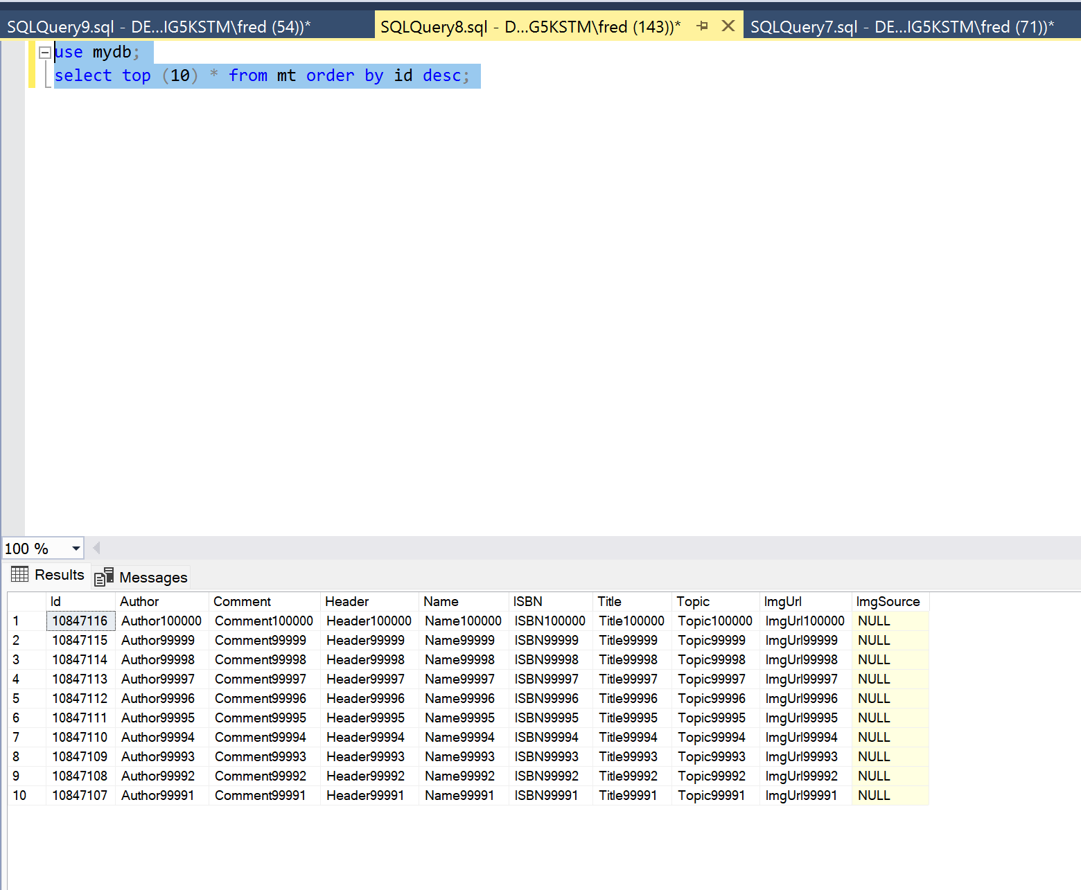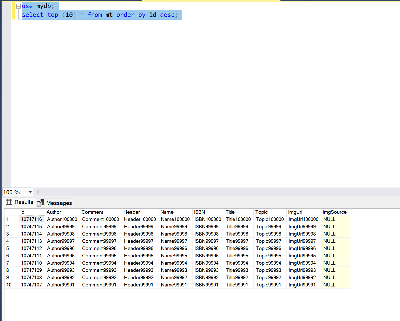 set @endId=100000;