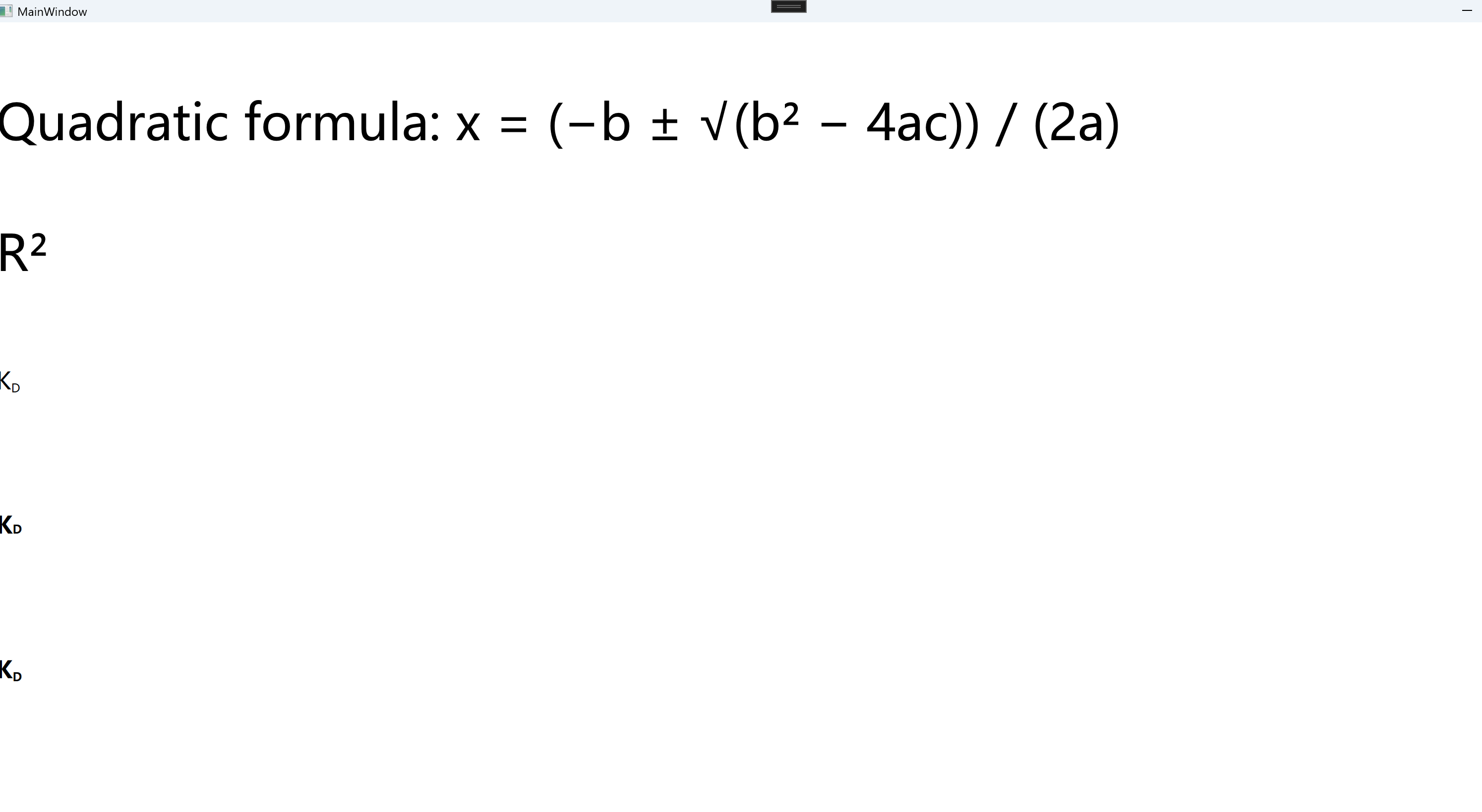 <TextBlock Grid.Row="0" Text="Quadratic formula: x = (−b ± √(b² − 4ac)) / (2a)"