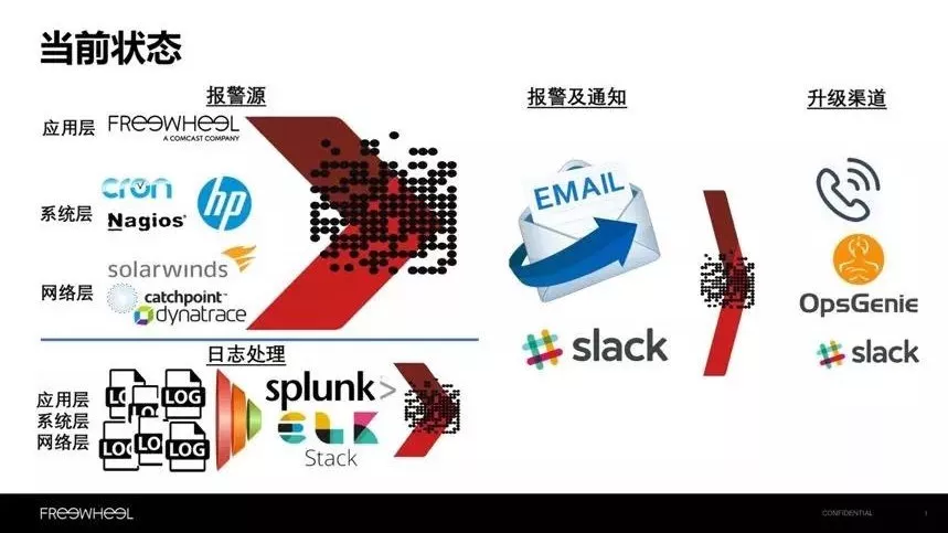 同时,随着 FreeWheel 业务系统越来越复杂,基础设施各技术层面都出现了不同的挑战。例如监控层面,就出现监控系统多样化,报警条目和数据海量化,但同时报警信息不规范,各类报警邮件的主题和内容都不统一,一个问题经常引发多条报警。在这种情况下,如何在海量的报警消息中甄别有效关键信息,并在报警风暴的压力下快速准确地定位问题解决问题,成为运维团队所面临的巨大挑战。